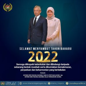 Yang di-Pertuan Agong Al-Sultan Abdullah Ri’ayatuddin Al-Mustafa Billah Shah dan Raja Permaisuri Agong Tunku Hajah Azizah Aminah Maimunah Iskandariah menzahirkan ucapan selamat tahun baharu dan menyelitkan doa untuk kesejahteraan rakyat dan negara.