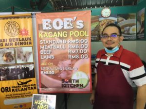 Paling istimewa yang menjadi tarikan gerainya terletak di Jalan P Ramlee BSN Food Court, betul-betul bersebelahan Kuala Lumpur City Centre (KLCC) adalah sajian Bob’s Kacang Pool yang pasti mengiurkan peminatnya.