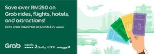 Grab Travel Pass boleh diperoleh daripada app Grab. Ia menyedia penjimatan melebihi RM250 pada harga pengenalan RM4.90 (Harga Biasa: RM9.90).