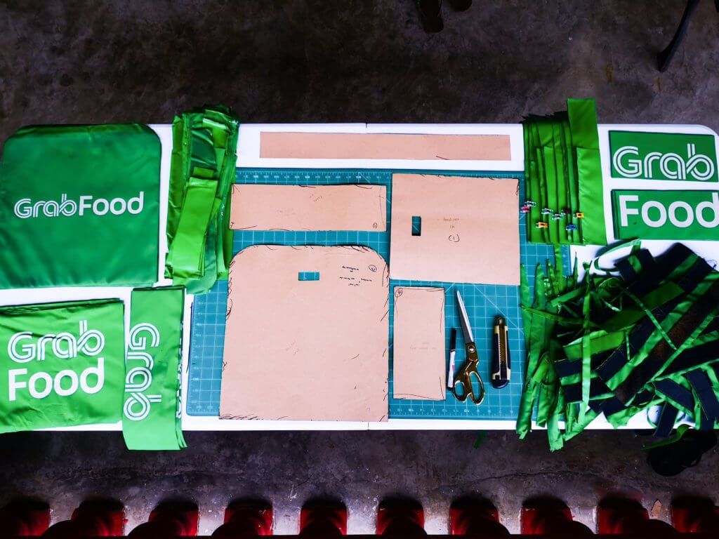 Neng telah berkolaborasi dengan Grab selepas dihubungi oleh pihak Grab pada bulan Jun 2020 dan mereka memberinya kebebasan untuk menghasilkan apa-apa sahaja yang dapat mengubah beg penghantaran mereka menjadi barang lain.