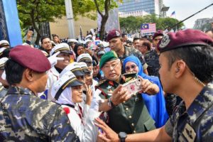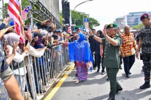 Baginda berdua dalam aksi spontan, luar daripada kebiasaan dan protokol, meluangkan masa kira-kira sejam beramah mesra, bersalaman dan mengambil swafoto dengan peserta perarakan dan pengunjung.