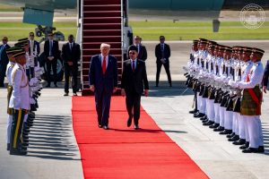Terdahulu ketika keluar dari pesawat Air Force One yang mendarat di Kompleks Bunga Raya Lapangan Terbang Antarabangsa Kuala Lumpur (KLIA) bagi lawatan sulungnya ke Malaysia, Trump juga dilihat melambai sebelum disambut oleh Perdana Menteri, Datuk Seri Anwar Ibrahim.